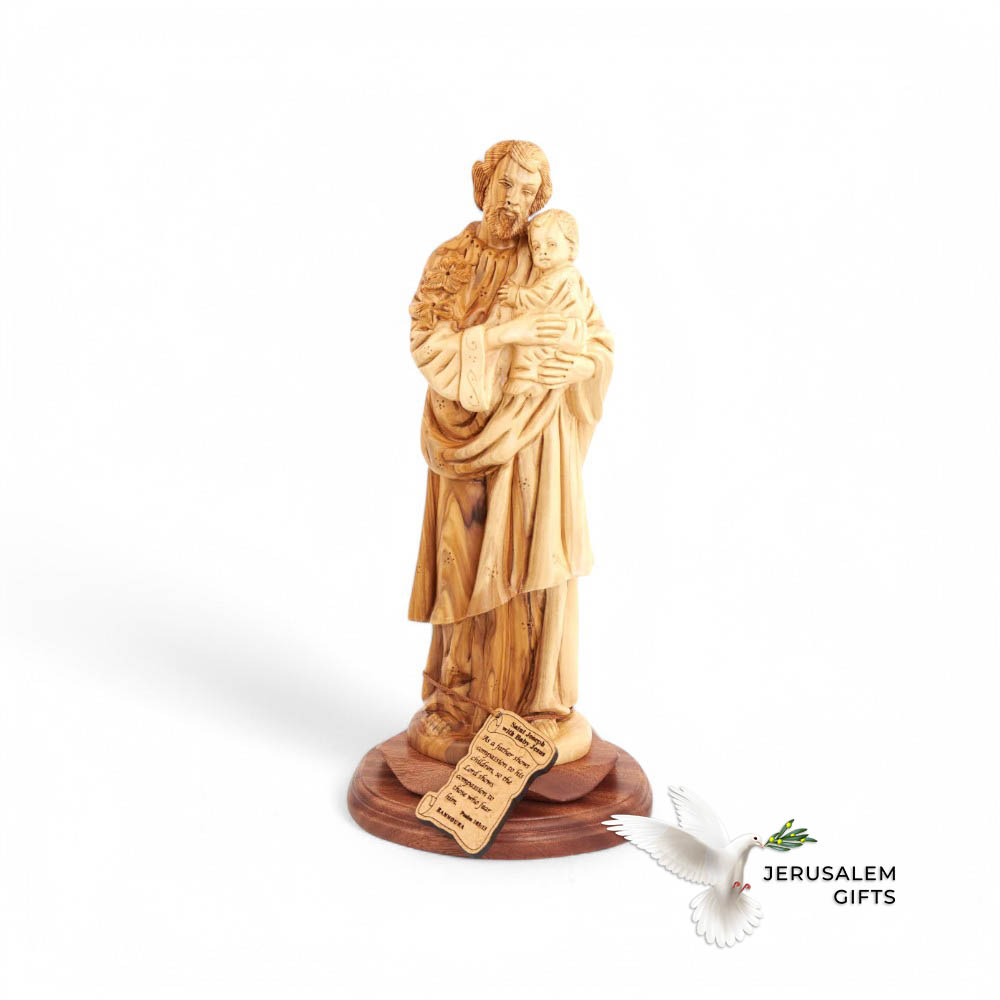 St. Joseph Carving from Olive Wood in Holy Land, 13.6″