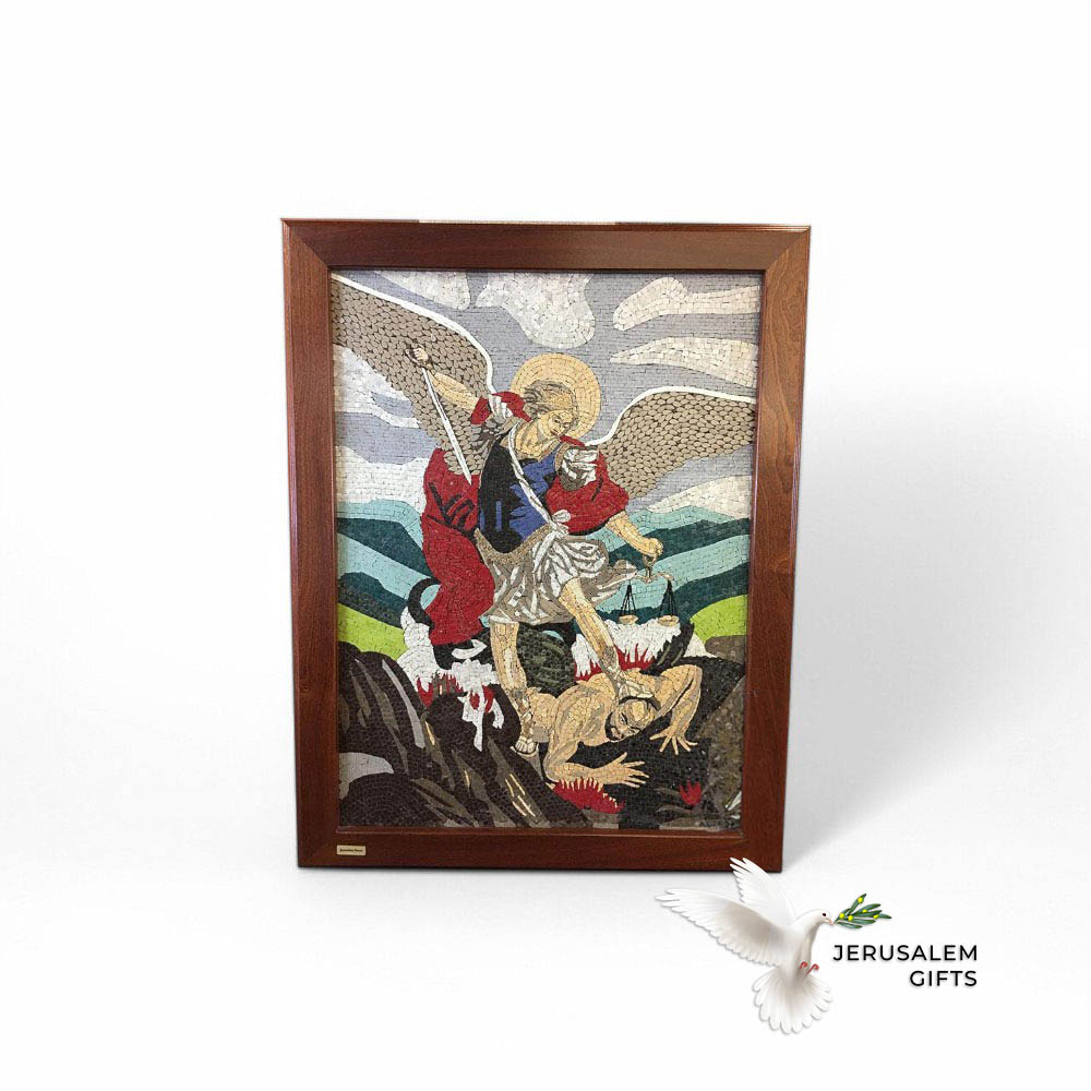 St. Michael’s Mosaic Wall Hanging Masterpiece Olive Wood Carving from the Holy Land