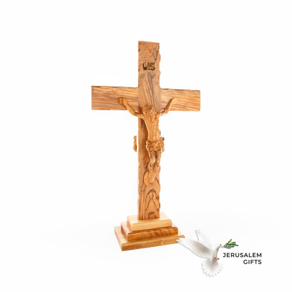 Standing Altar Crucifix, 15.5″ , Holy Land Olive Wood Carving