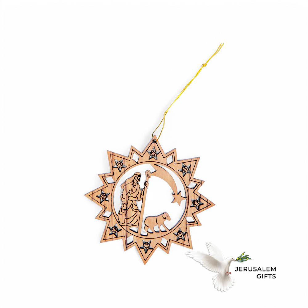 Nativity Scene Ornament (Candle Lantern Background) Olive Wood from Bethlehem