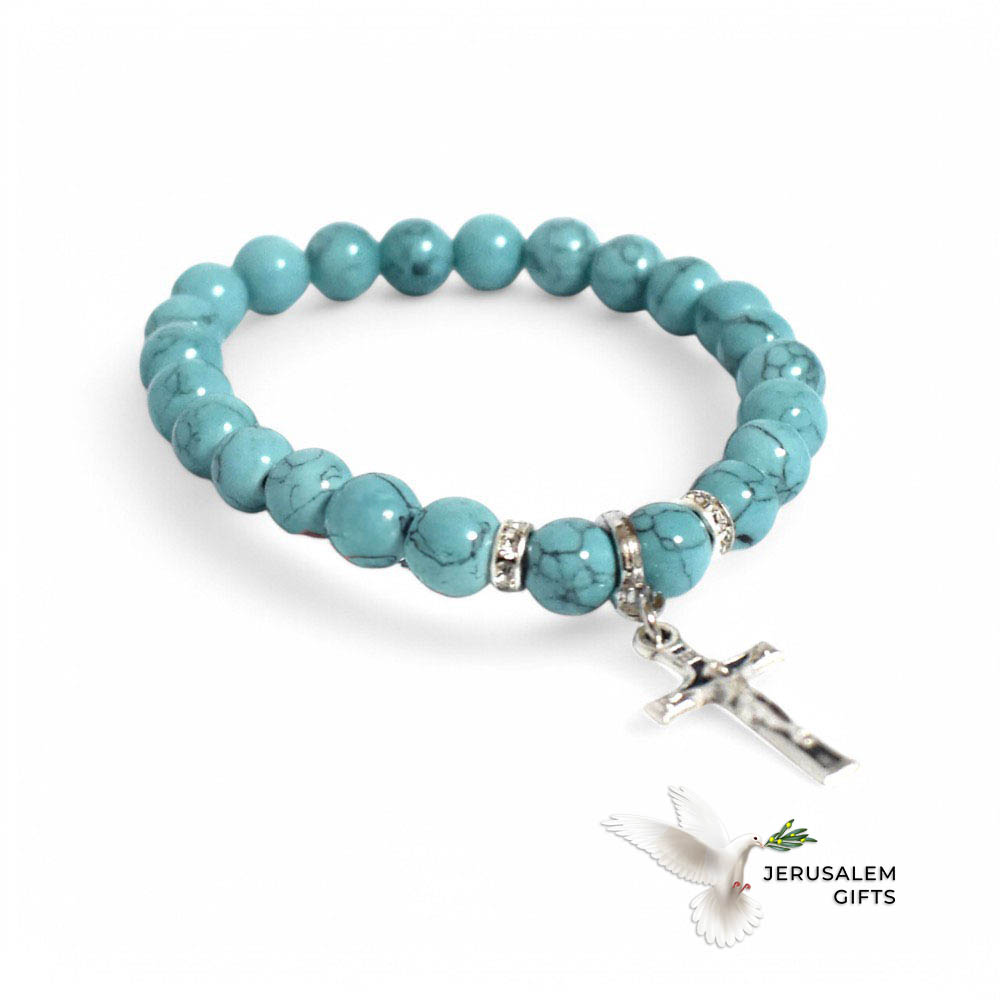Bracelet with Jerusalem Cross Pendant, Wooden 8 6 mm Rosary