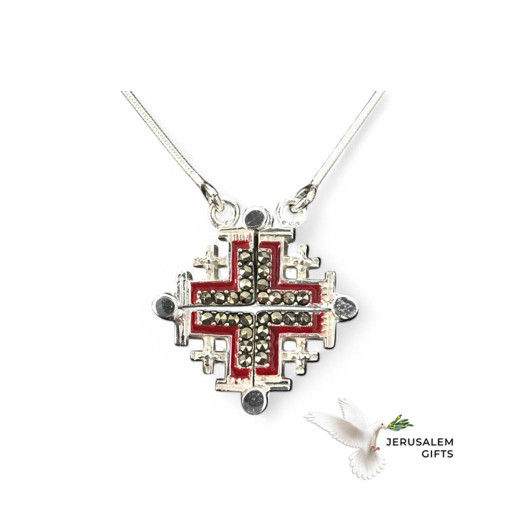Two Way Dark Red Magnetic Jerusalem Cross Necklace with Gemstones