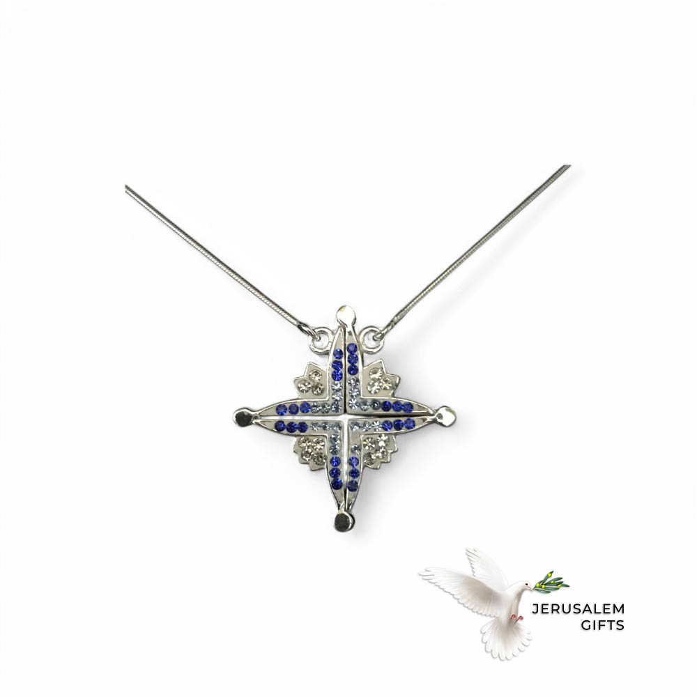 Dark Blue Jerusalem Cross Necklace with White Gemstones