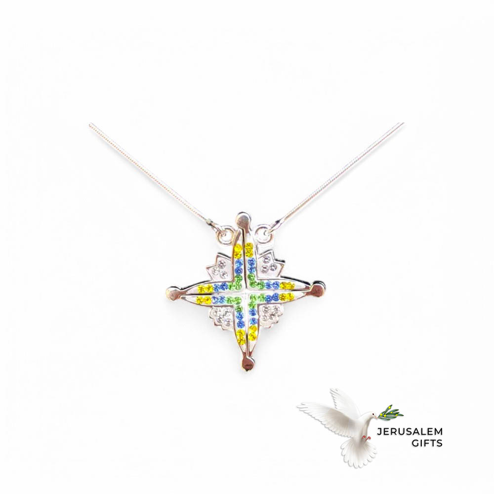 Jerusalem Cross Necklace with Gemstones Multi Layers (L). Sterling Silver Alisee Pattee
