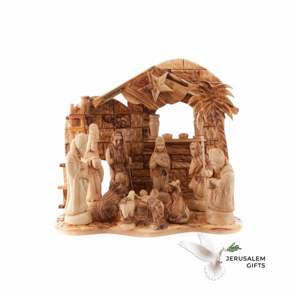 Nativity Scene with Music Player, 10.5″ Handmade in Holy Land