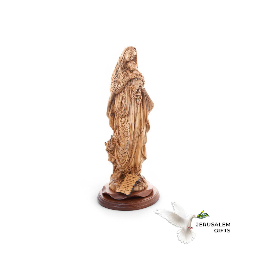 Virgin Mary holding Jesus Christ Sculpture, 17.3″ Olive Wood from Holy Land