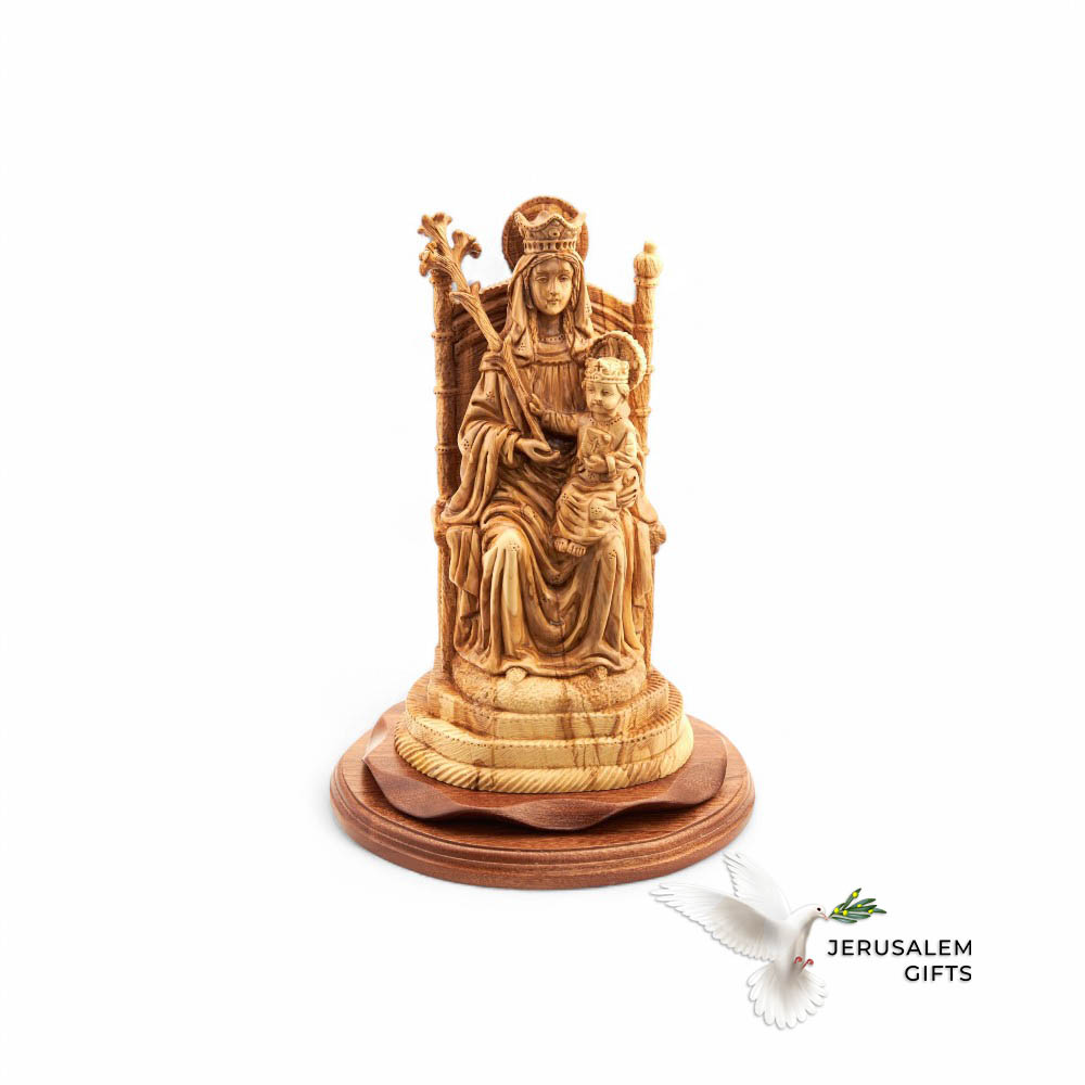 Virgin Mary w/ Baby Jesus Statue, 14.6" Olive Wood Carving Statue from BethlehemVirgin Mary w/ Baby Jesus Statue, 14.6″ Olive Wood Carving Statue from Bethlehem
