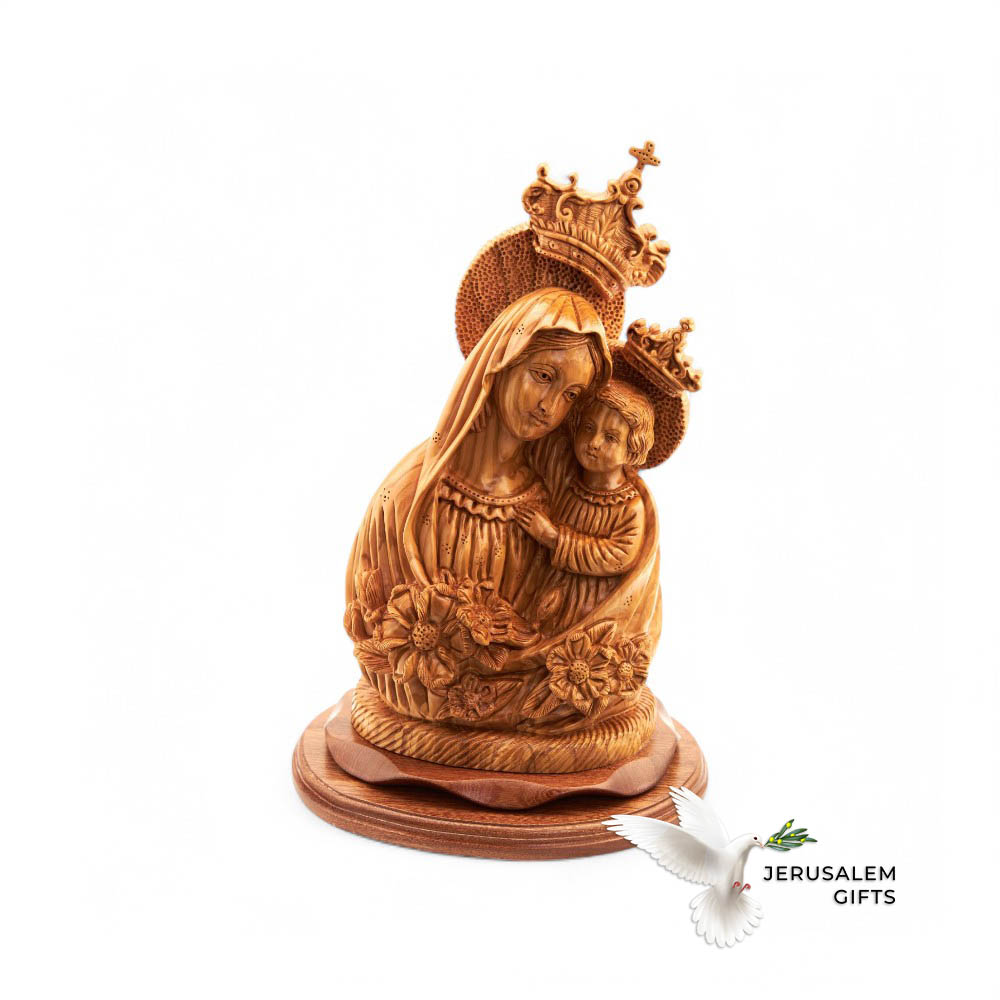 Virgin Mary w/ Baby Jesus Statue, 16.5″ Olive Wood Carving Statue from Bethlehem