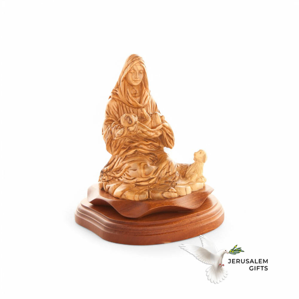 Virgin Mary with Sleeping Christ Child 8.1″, Carved from the Holy Land Olive Wood