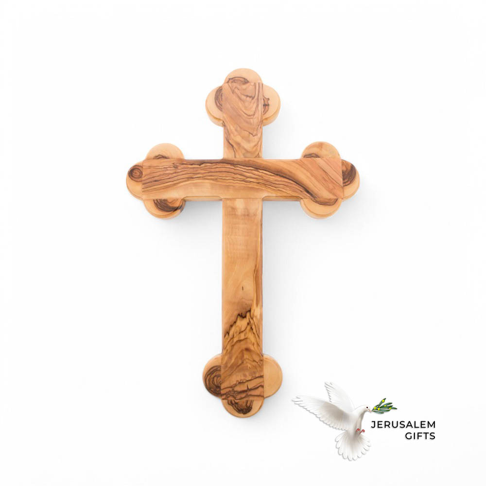 Wall Cross, 15.4″, Budded, 14 Stations Engraved, Holy Land Olive Wood