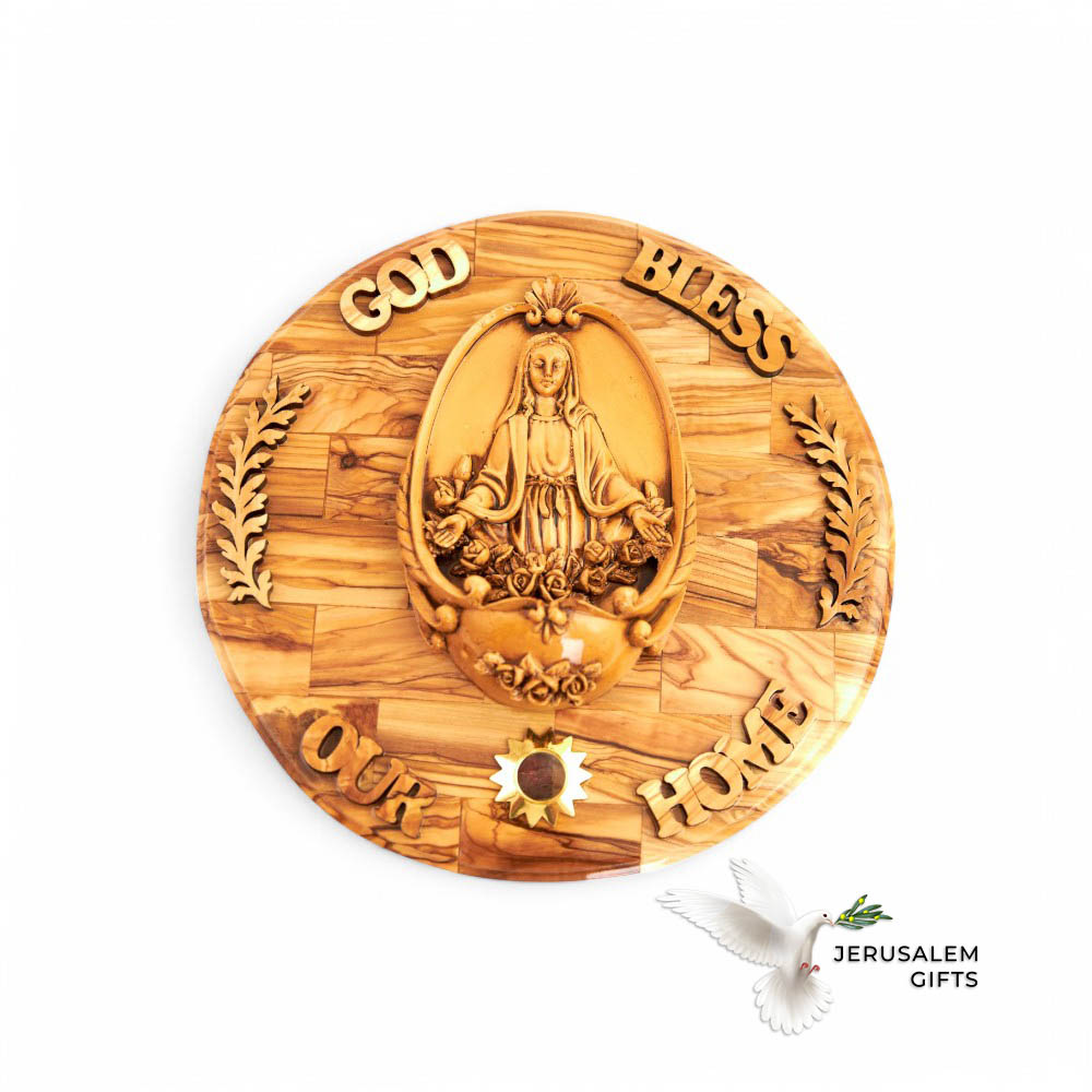 Wall Cross with “God Bless Our Home”, 7.5″, Jesus Image, Olive Wood from Holy Land